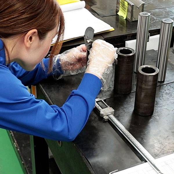 熱処理検査では、製品の表面、製品の内部硬さを測定する検査や、熱処理後、製品のワークを冷やすための水の冷却速度を測定したり、様々な検査を行っています。